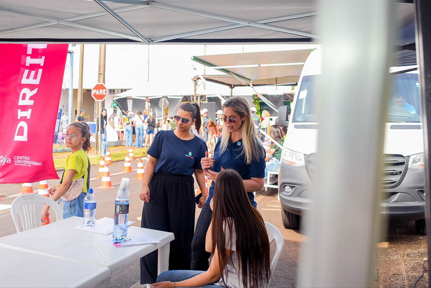 A Afya Pato Branco esteve presente com atendimentos e orientações conduzidos por acadêmicos dos cursos de Medicina e Direito, sob supervisão docente. Por meio da disciplina Projeto de Extensão V – Direito Itinerante, os estudantes do curso de Direito, orientados pela professora Ma. Julia Dambrós Marçal, realizaram atendimento jurídico gratuito à comunidade, com orientações sobre direitos fundamentais, cidadania e acesso à justiça. Já os alunos do curso de Medicina, sob coordenação da professora Ma. Gisele Regina Parsianello, integraram o Programa de Integração Ensino, Pesquisa e Extensão (PIEPE) com ações voltadas à vacinação e à promoção da saúde, reforçando a importância da imunização como prática de prevenção e cuidado coletivo.