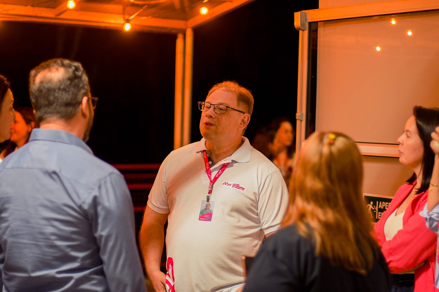 Os participantes foram acolhidos em um ambiente leve, descontraído e sensorial, montado com cadeiras, tapetes, pufes, biombos e estações de massagem, além de lanches saudáveis. Um painel de recadinhos, uma estação de arteterapia e um televisor com fotos de momentos marcantes da rotina acadêmica reforçaram o clima de celebração e afeto, permitindo que os educadores compartilhassem lembranças e mensagens de gratidão.