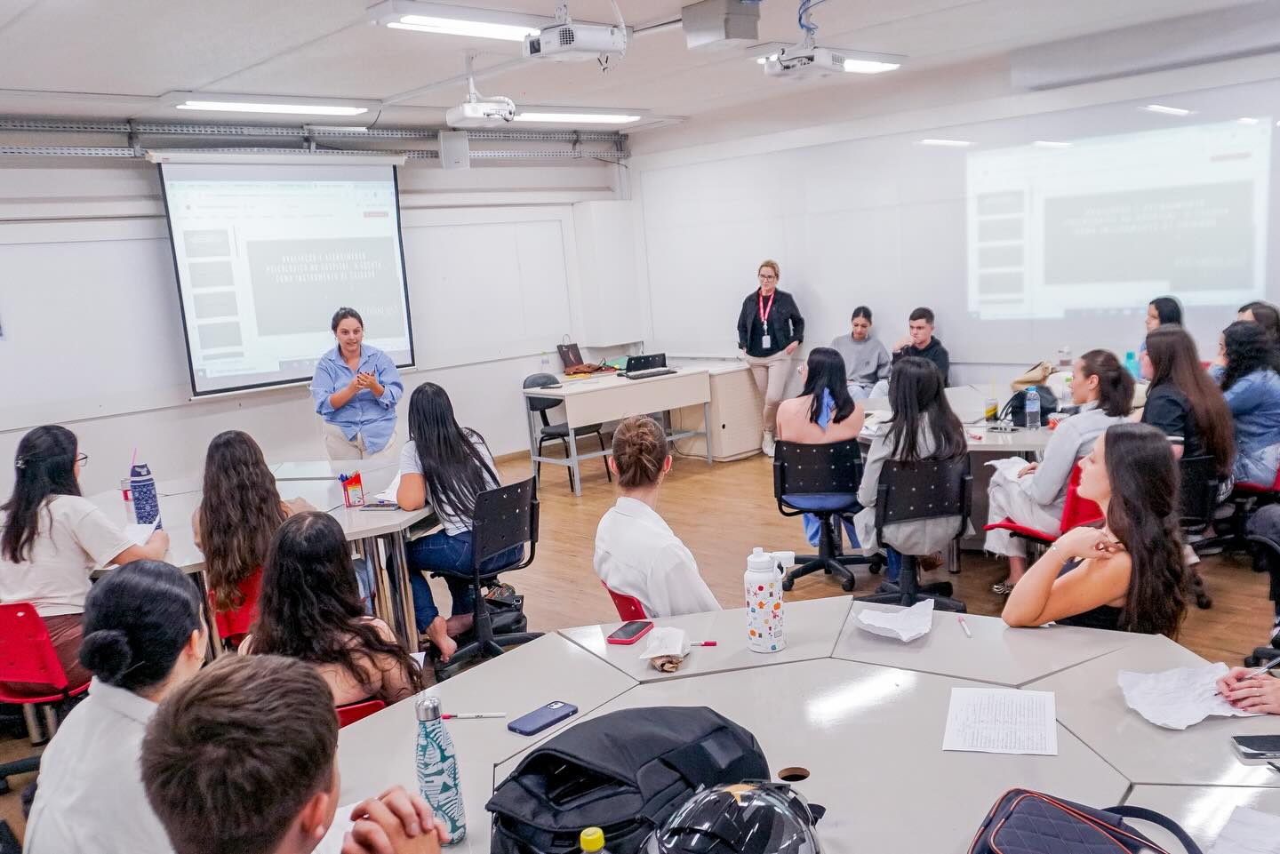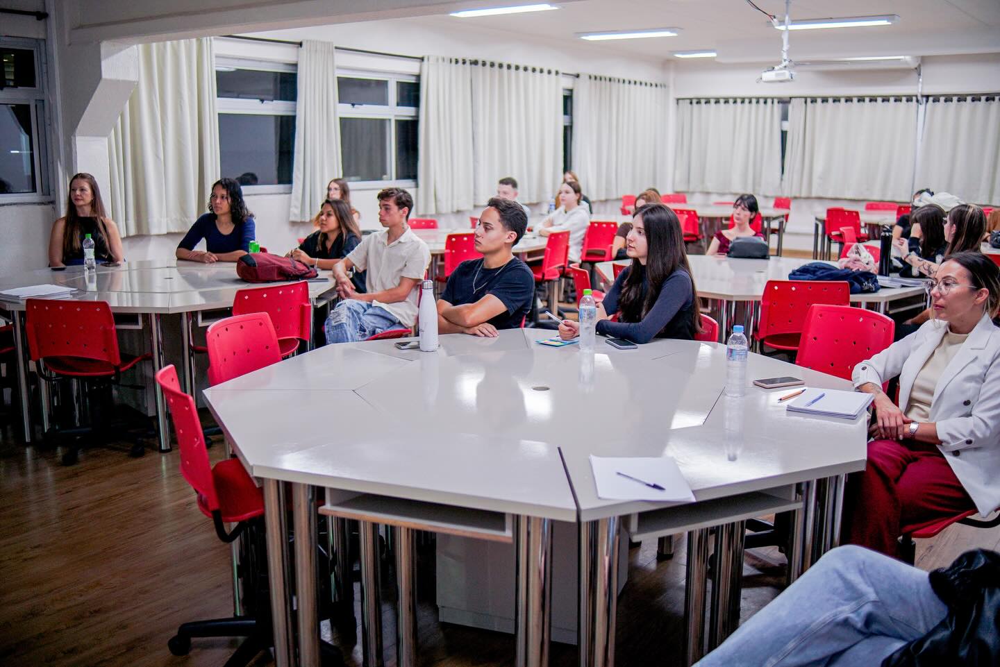 No dia 15 de abril, a programação seguiu com a realização de oficinas práticas, possibilitando aos acadêmicos o contato com diferentes contextos de atuação profissional. As atividades abordaram temas como avaliação psicológica no contexto organizacional e do trabalho, com Valéria Zopeletto Borda; avaliação neuropsicológica infantil, com Suelen Facin; avaliação psicológica no esporte, conduzida por Eduardo Carvalho; e avaliação na área jurídica, com Jhenifer Lorini. Também foram trabalhadas abordagens relacionadas ao contexto hospitalar, com Débora Baldissera, que discutiu a escuta como instrumento de cuidado; à avaliação de altas habilidades e superdotação, com Russelia Vanila Godoy; às estratégias psicomotoras na avaliação infantil, com Patrícia Horn; e às vulnerabilidades sociais e interseccionalidades, tema conduzido por Sara Caroline dos Santos.